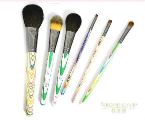 動物毛的刷子的彈性很好,抓粉力強,暈染能力很好,化妝的效果是好的。但它多多少少會有些扎臉,使用起來沒有那么親膚。抓粉力越強暈染力越好的刷子,一定是有點扎臉的。市面上常見的幾種動物毛包括馬毛、灰鼠毛、松鼠毛、和山羊毛。其中山羊毛是最普遍的一種化妝刷材料,細分成粗光峰,中光峰,細光峰,白尖峰,黃尖峰。根據之前的毛峰原理,細光峰羊毛是最高檔的,相對于其他品質,毛發更細更柔,其天然毛發的毛鱗片又使它抓粉力強,是羊毛化妝刷中的極品,價格也較高。馬毛是動物毛中抓粉力最強,但是膚感最差的,因為毛質較硬,比較扎臉。灰鼠毛和松鼠毛則柔軟,屬于高級毛,抓粉力相對馬毛和羊毛較弱,但是日常化妝足夠。此外還有狍子毛,狐貍毛等高級毛,都是可以用來做化妝刷的,不過這些產品成本較高,賣的價格也比較昂貴,化妝效果與之前提到的幾種常見無明顯差異。